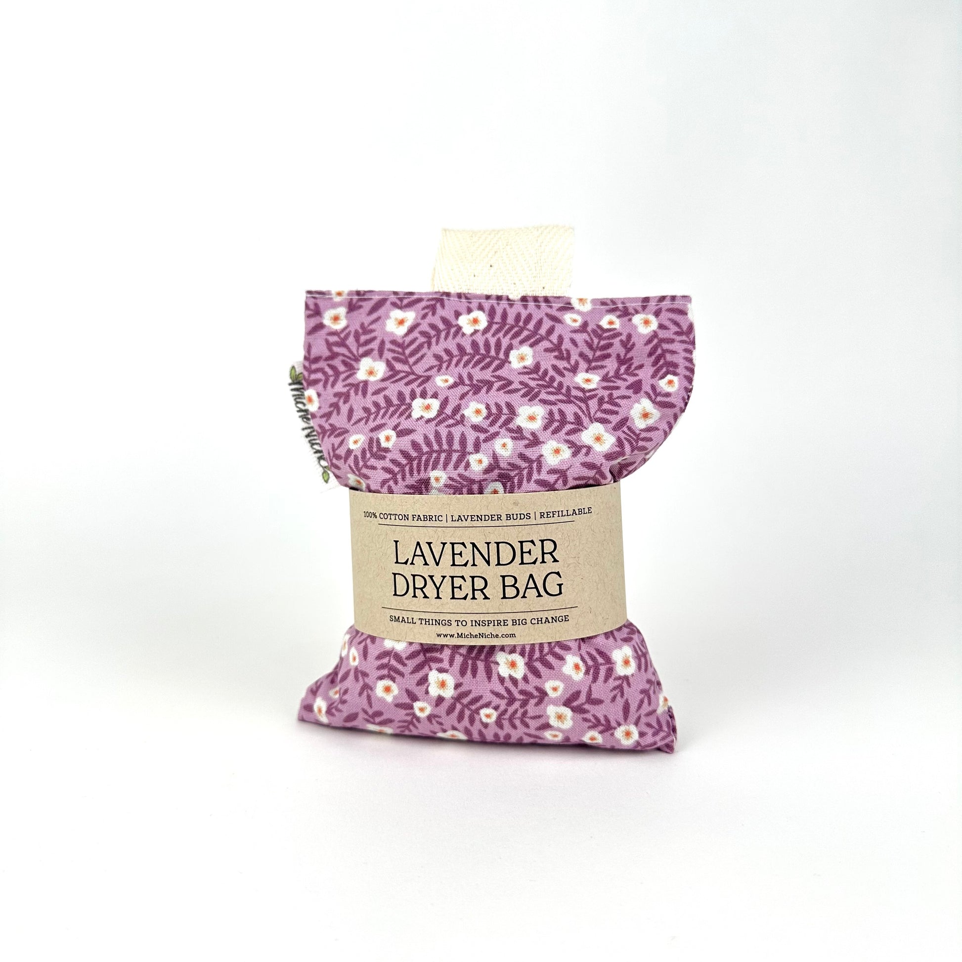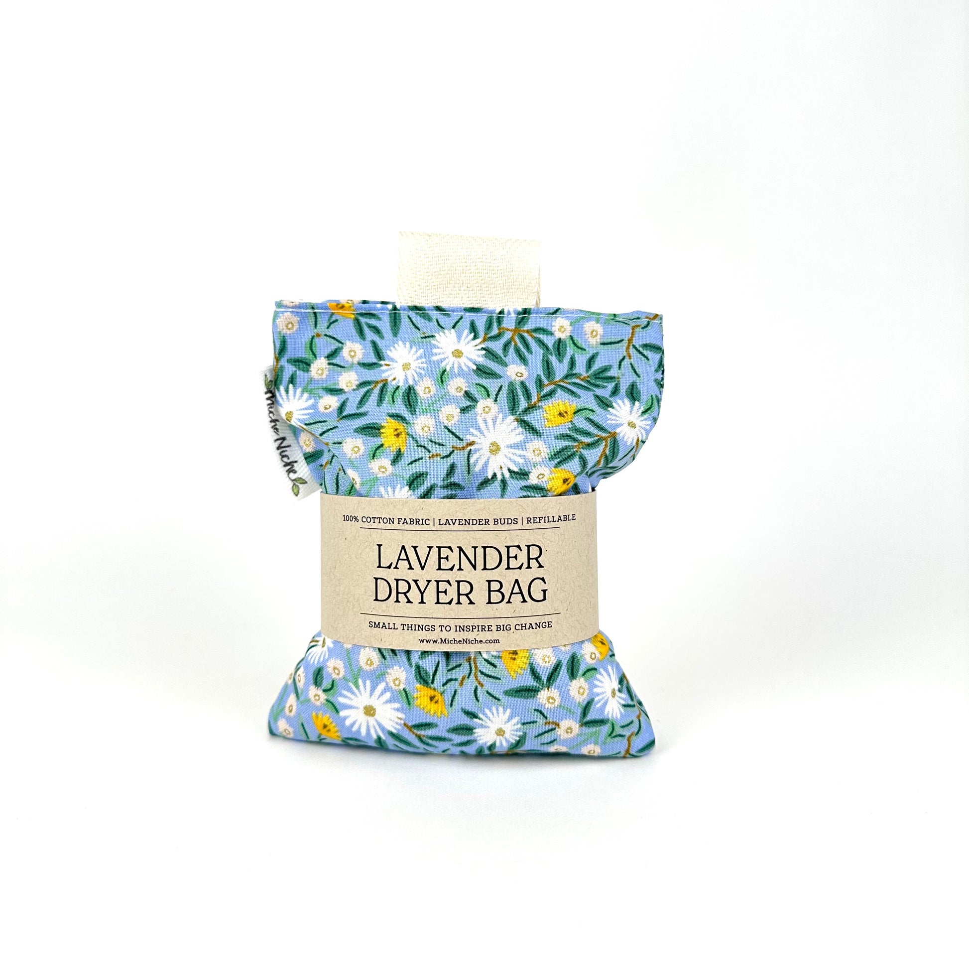 This refillable dryer bag is an awesome replacement for single use dryer sheets. It is filled with high-quality lavender buds, and securely closes with strong hook and loop. Pull tabs at the opening make it easy to open so you can switch out to new filling.
