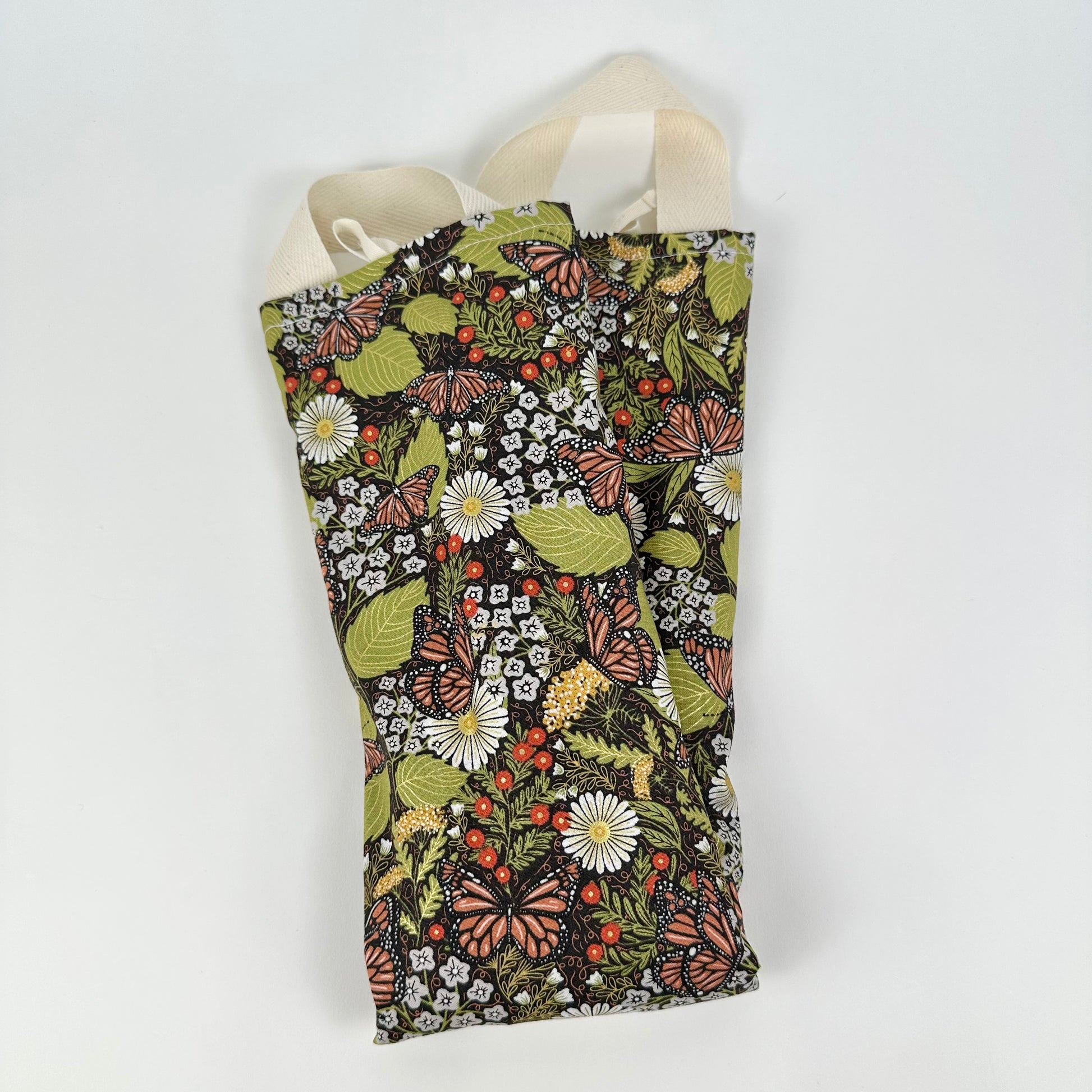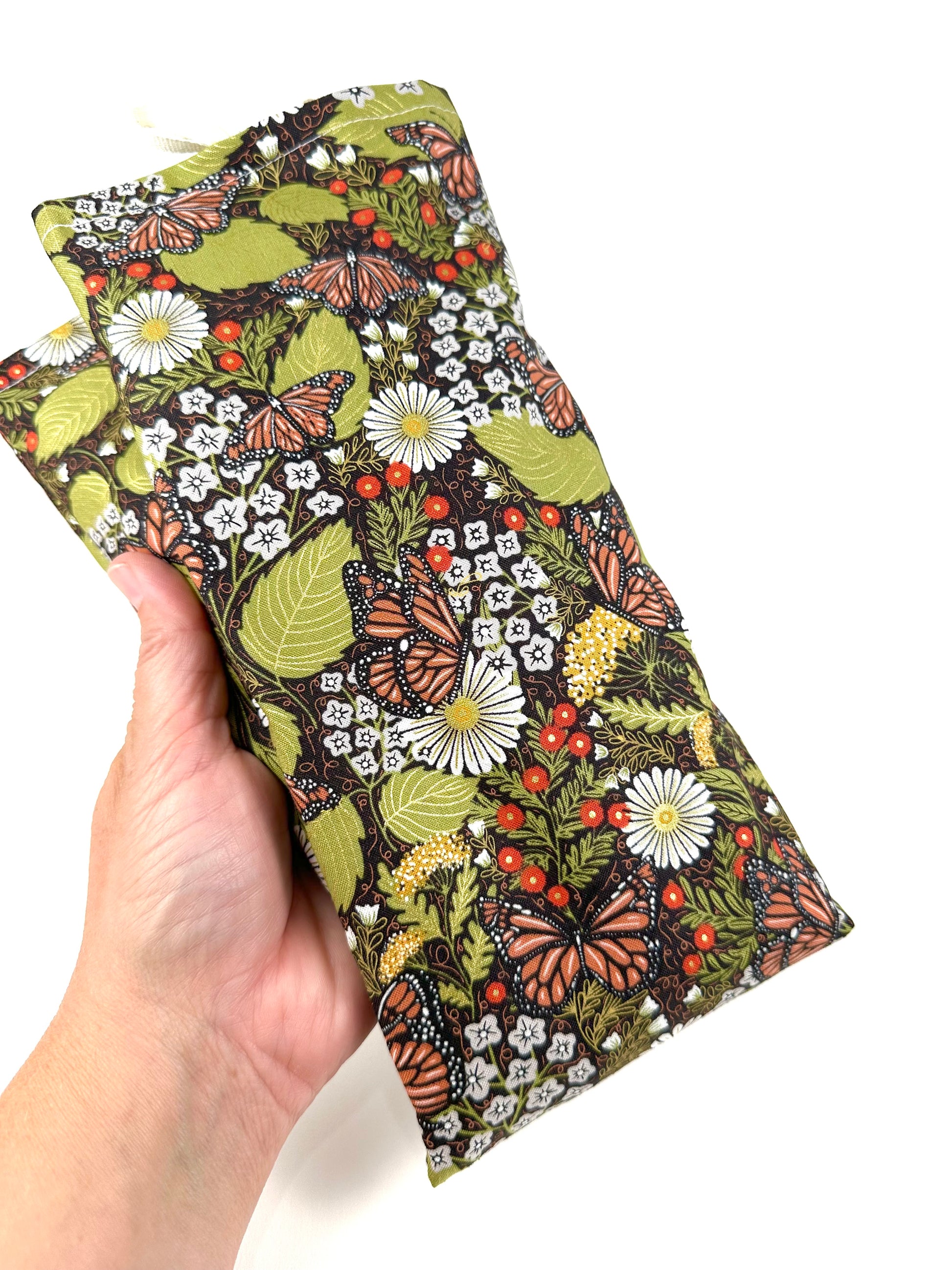 These handmade lavender neck wraps are filled with flaxseed and local lavender. The cover is made with fabric featuring butterflies with touches of gold and is removable and washable. Choose your favorite to keep or give as a gift.